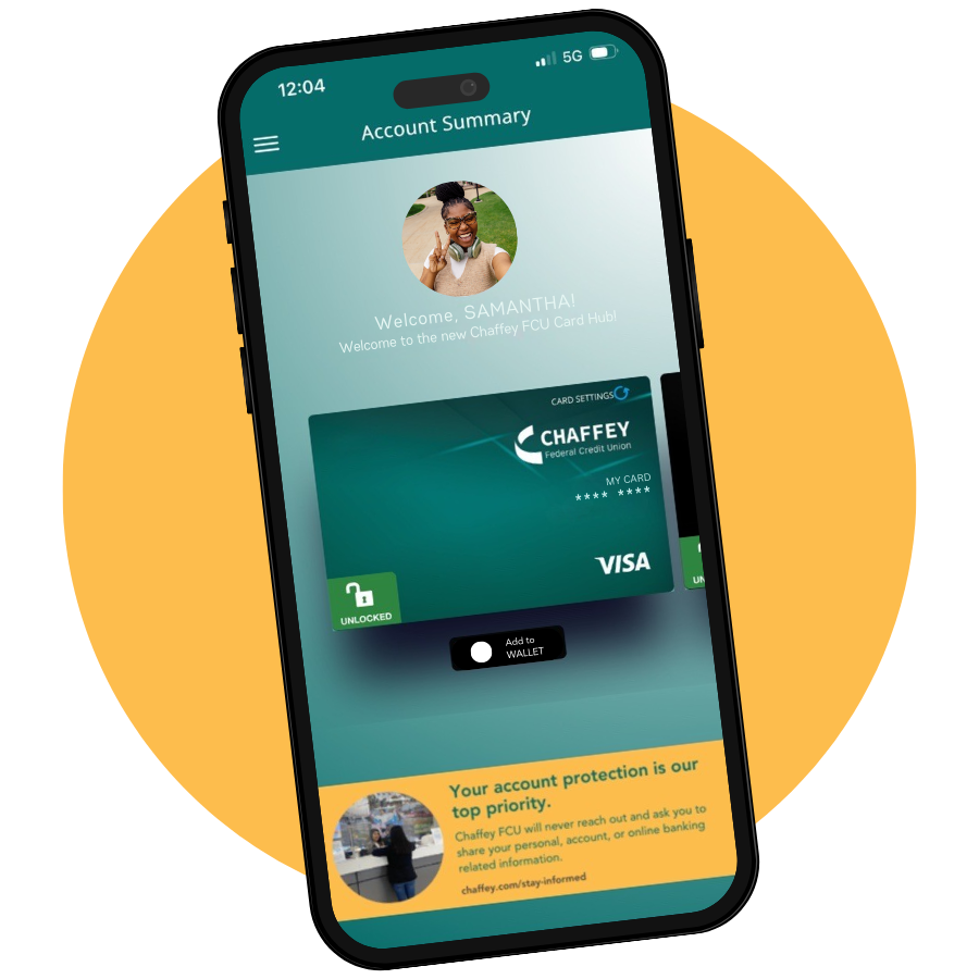 You can view your credit and debit card transactions, pay your credit card bill and view payment history, lock or unlock cards, report cards lost or stolen, and set alerts and controls for purchases.