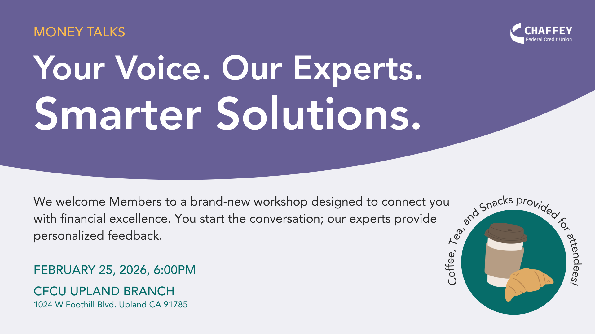 Introducing Money Talks: a new Chaffey FCU Workshop centered around your financial questions and goals. Financial excellence shouldn’t be restricted. We’re sharing insight and education from a variety of financial experts to help you on your journey to wellness.