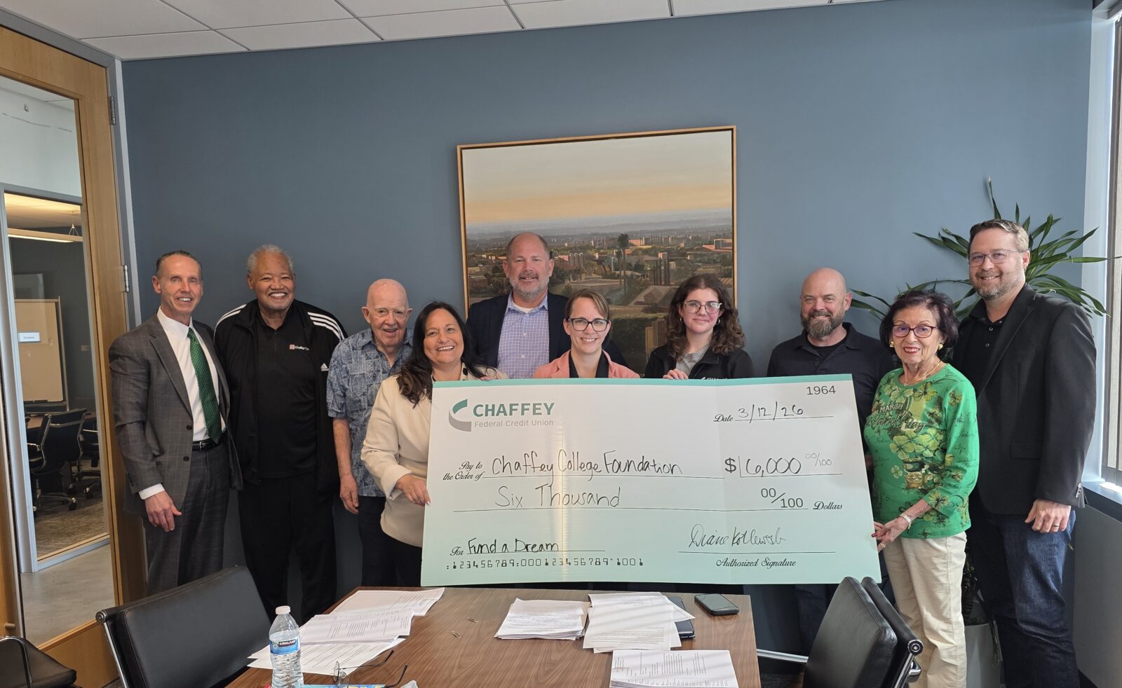 During the 2025 Holiday Season, Chaffey Members helped us donate $6,000 to Chaffey College scholarships!